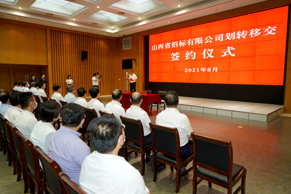 8月5日下午,由山西省行政審批服務(wù)管理局與省機(jī)關(guān)事務(wù)管理局舉辦的山西省招標(biāo)有限公司劃轉(zhuǎn)移交簽約儀式,在省政務(wù)服務(wù)中心報(bào)告廳隆重舉行。省行政審批局局長(zhǎng)李東洪及班子成員、省機(jī)關(guān)事務(wù)局毛益民局長(zhǎng)及班子成員、后勤體制改革領(lǐng)導(dǎo)小組改革專班負(fù)責(zé)人崔志明、晉勤集團(tuán)董事長(zhǎng)楊文治及班子成員、省行政審批局、省機(jī)關(guān)事務(wù)局相關(guān)處室負(fù)責(zé)人出席儀式,晉勤集團(tuán)、省招標(biāo)公司相關(guān)工作人員參加儀式。