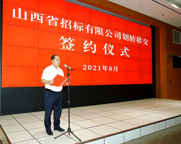 儀式首先由省行政審批服務(wù)管理局局長(zhǎng)李東洪致辭。李東洪指出:近年來省機(jī)關(guān)事務(wù)管理局逐步探索出機(jī)關(guān)事務(wù)集中統(tǒng)一管理的“山西路徑”,打造“山西名片”,在全國(guó)機(jī)關(guān)事務(wù)工作改革創(chuàng)新發(fā)展中走在了前列。這其中,“一中心兩集團(tuán)”發(fā)揮了重要作用。山西省招標(biāo)公司的劃轉(zhuǎn)移交,有利于進(jìn)一步延伸產(chǎn)業(yè)鏈、拓展?fàn)I運(yùn)空間、實(shí)現(xiàn)優(yōu)勢(shì)互補(bǔ)。山西省招標(biāo)公司要盡快融入晉勤集團(tuán),調(diào)整發(fā)展戰(zhàn)略,完善體制機(jī)制,努力使晉勤集團(tuán)和招標(biāo)公司做大做強(qiáng)做優(yōu)。同時(shí),省行政審批服務(wù)管理局將一如既往地繼續(xù)支持山西省招標(biāo)公司各項(xiàng)工作,為推進(jìn)國(guó)有企業(yè)高質(zhì)量發(fā)展做出更大貢獻(xiàn)。