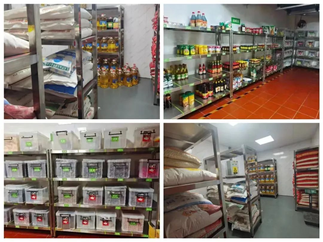 在濱西辦公區(qū)的倉(cāng)庫(kù)內(nèi),一排排、一層層碼放整齊的調(diào)味品、米面油等食材,仍保持著天天有更新、日日有補(bǔ)充。
