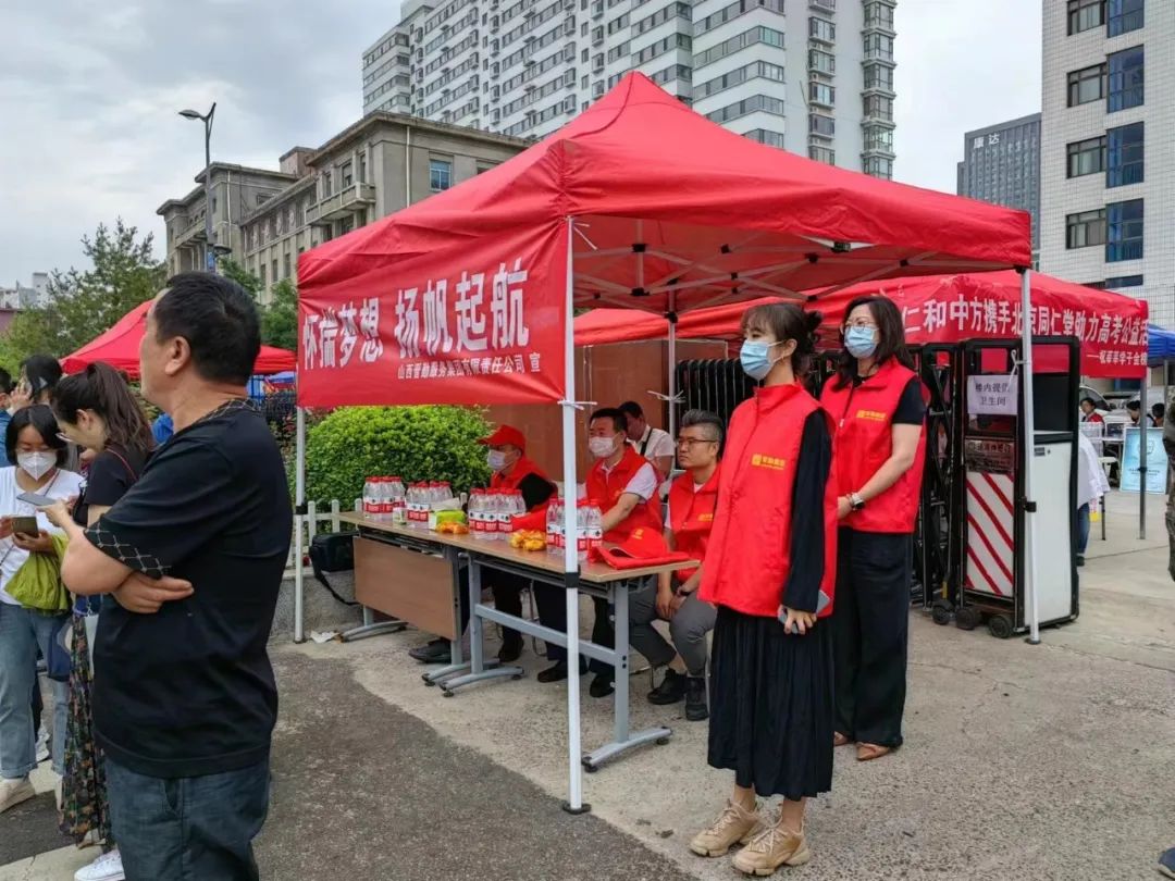 7日一早,集團黨員干部職工身著志愿服務紅馬甲,來到太原市37中考點,合力搭建遮陽棚、搬運擺放物資、懸掛勵志標語、張貼溫馨提示……集團領導親自帶隊現場指揮,干部職工積極踴躍有條不紊,在數個晉勤志愿服務站里全力為高考保駕護航。